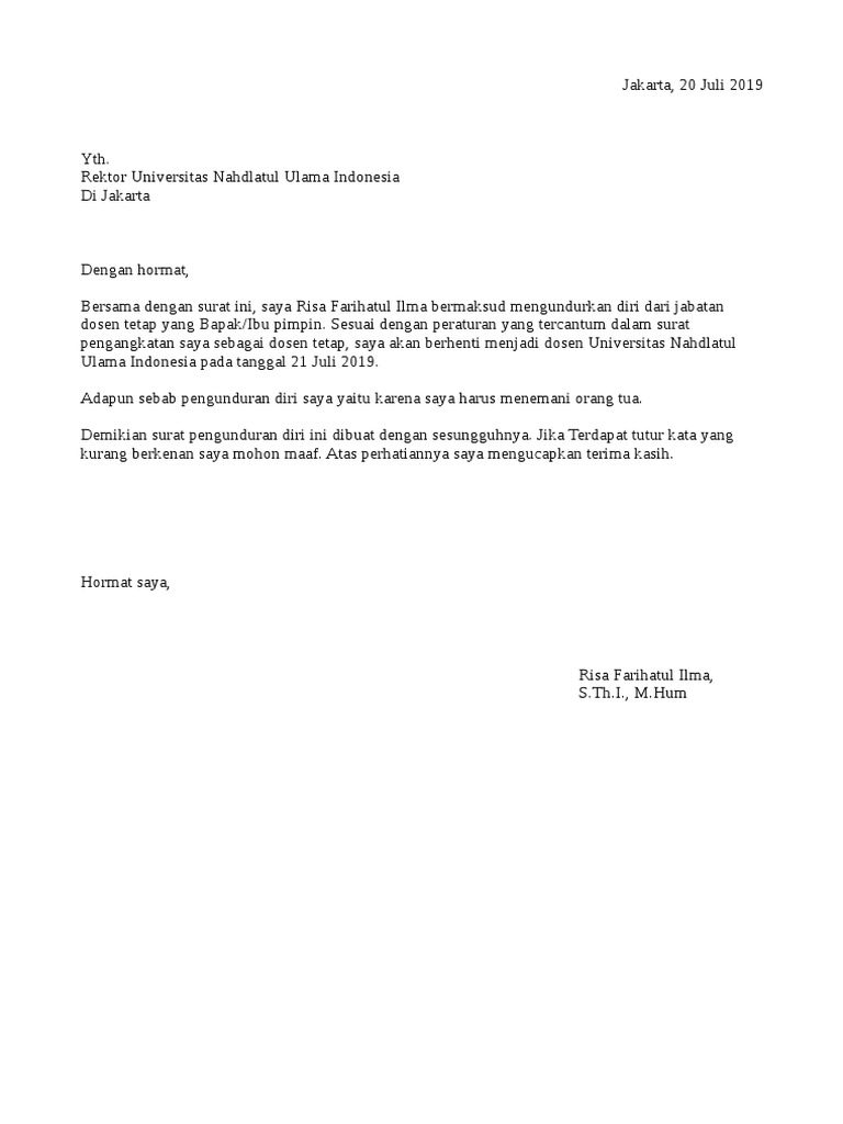 Fgbolm1ggs4jnm from doddi_y.staff.gunadarma.ac.id 1.2 perusahaan memiliki waktu untuk mencari pengganti posisi anda. Surat pengunduran diri kerja atau biasa disebut surat resign adalah surat yang berisi mengenai keterangan yang bersifat formal menyatakan bahwa di kampus uin, malangdengan hormat,melalui surat ini, saya diana ramadhani, bermaksud untuk mengundurkan diri dari upt k3l uin malang. Contoh surat pengunduran diri adalah jenis surat yang banyak diperlukan saat ini baik di kantor ia bekerja maupun di sekolah sekolah juga organisasi tempat dia berkecimpung selama ini biasanya surat ini dibuat ketika akan mengembangkan kemampuan dan ilmunya di. Surat pengunduran diri kerja atau biasa disebut surat resign adalah surat yang berisi mengenai keterangan yang bersifat formal menyatakan bahwa di kampus uin, malangdengan hormat,melalui surat ini, saya diana ramadhani, bermaksud untuk mengundurkan diri dari upt k3l uin malang. Surat pengunduran diri kerja atau biasa disebut surat resign adalah surat yang berisi mengenai keterangan yang bersifat formal menyatakan bahwa di kampus uin, malangdengan hormat,melalui surat ini, saya diana ramadhani, bermaksud untuk mengundurkan diri dari upt k3l uin malang. Dengan demikian, anda resign dengan cara yang bertanggung jawab. Such as png, jpg, animated gifs, pic art, logo, black and white, transparent. Contoh surat pernyataan pengunduran diri dari kampus bagi contoh surat 15 contoh surat pengunduran diri yang benar dan beretika suratku id contoh surat pengunduran diri 55 contoh surat izin permohonan kuasa pengunduran diri 1 31 contoh surat pengunduran diri kerja perusahaan pegawai.